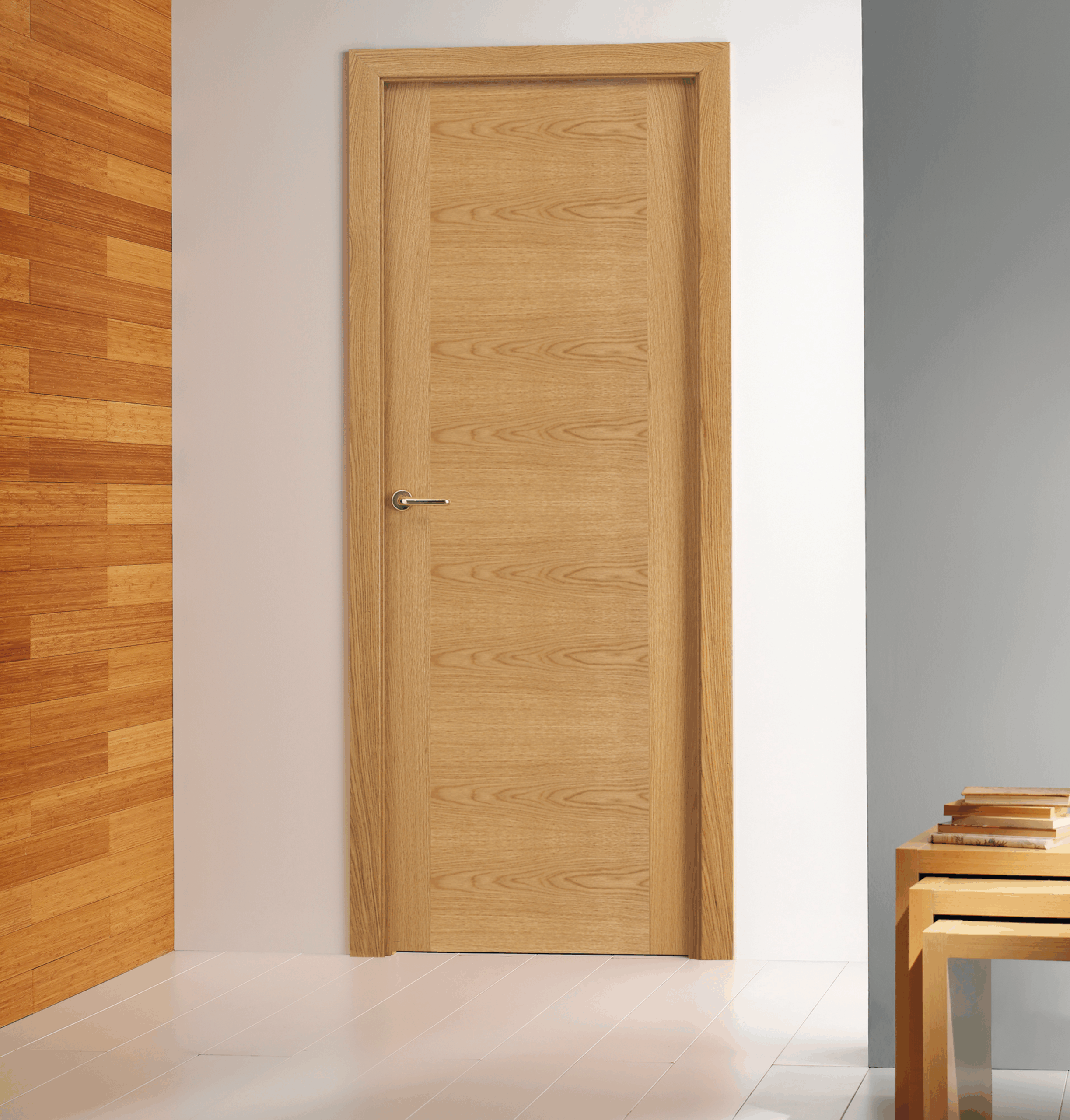 Con un diseño liso y elegante, esta puerta de chapa de madera se distingue por las variaciones únicas en el patrón de costura de sus vetas, aportando personalidad y carácter a cada espacio. Desde proyectos residenciales hasta entornos comerciales, ofrecen la combinación perfecta de funcionalidad y estética, elevando cada espacio con una elegancia discreta